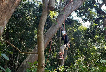 利用專業攀樹技術,在不傷害樹木的前提下,修剪高處或難以觸及的樹枝,適用於公園、大型庭園及高樹修剪需求。